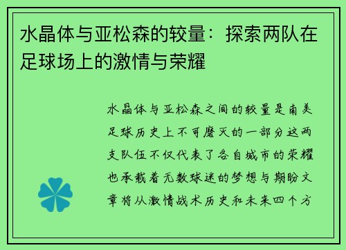 水晶体与亚松森的较量:探索两队在足球场上的激情与荣耀